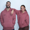 Sudadera unisex color rosa vintage con capucha y de felpa perchada con cuello redondo.